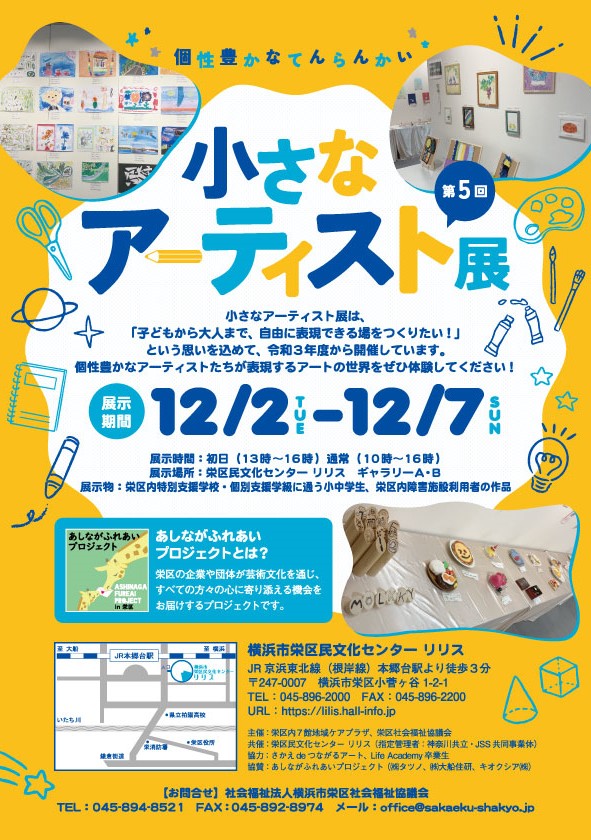 ギャラリーの一覧 12月2日(火) ~12月7日(日) 第5回 小さなアーティスト展 日時 10:00~16:00 初日13:00~ 入場料 無料 会場 ギャラリーAB 12月10日(水) ~12月14日(日) ティーンズクリエイション展2025「Sakae Wakamono Creation」 日時 10:00~19:00 最終日~18:00 入場料 無料 会場 ギャラリーAB・会議室AB 12月16日(火) ~12月21日(日) グループ彩雲25周年記念展 日時 10:00~17:00 初日13:30~、最終日~15:00 入場料 無料 会場 ギャラリーAB 1月7日(水) ~1月12日(月) 大阪・関西万博世界平和祈念祭 写真展 ~小菅ヶ谷 春日神社のお神輿が万博へ~ 日時 10:00~17:00 初日13:00~、 最終日~16:00 入場料 無料 会場 ギャラリーAB 1月16日(金) ~1月18日(日) みんなで創るアートのおまつり「egaoフェスティバルvol.13 in lilis」 日時 10:30~17:00 最終日~16:00 入場料 無料 会場 ギャラリーAB 1月27日(火) ~2月2日(月) 神韻(SHEN Yun)作品展 日時 10:00~17:00 初日13:00~、最終日~16:00 入場料 無料 会場 ギャラリーA